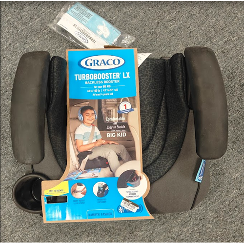 The TurboBooster LX Backless Booster with LATCH helps safely transport your big kid from 40 to 100 lb and 43-57". This seat helps transiton your child from car seat to seat belt by boosting them up to provide a proper fit using the vehicle seat belt. It provides a secure connection to your vehicle seat with its front-adjust LATCH system, making self-buckling easier for your independent child. The seat has an integrated cup holder and hideaway storage compartment to keep your child's drinks and favorite things within arm's reach.
