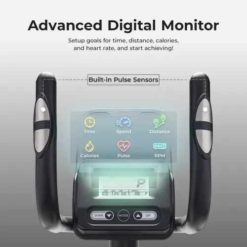 【DIGITAL MONITOR w/TARGETING FUNCTION】Personalize your training by setting time, distance, calorie, and heart rate goals. Track progress in real-time with the advanced digital monitor and use the built-in pulse sensor for precise workout metrics.