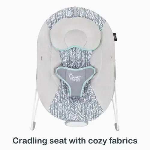 The Smart Step® Trend EZ Bouncer is a must-have for you and your tiny tot. Made with soft cozy fabrics, this Bouncer has a comfy seat and a reversible head pillow that can be adjusted and removed as your little one grows. Your child will stay comfy and secure with the adjustable 3-point safety harness, crotch cover and adjustable headrest.