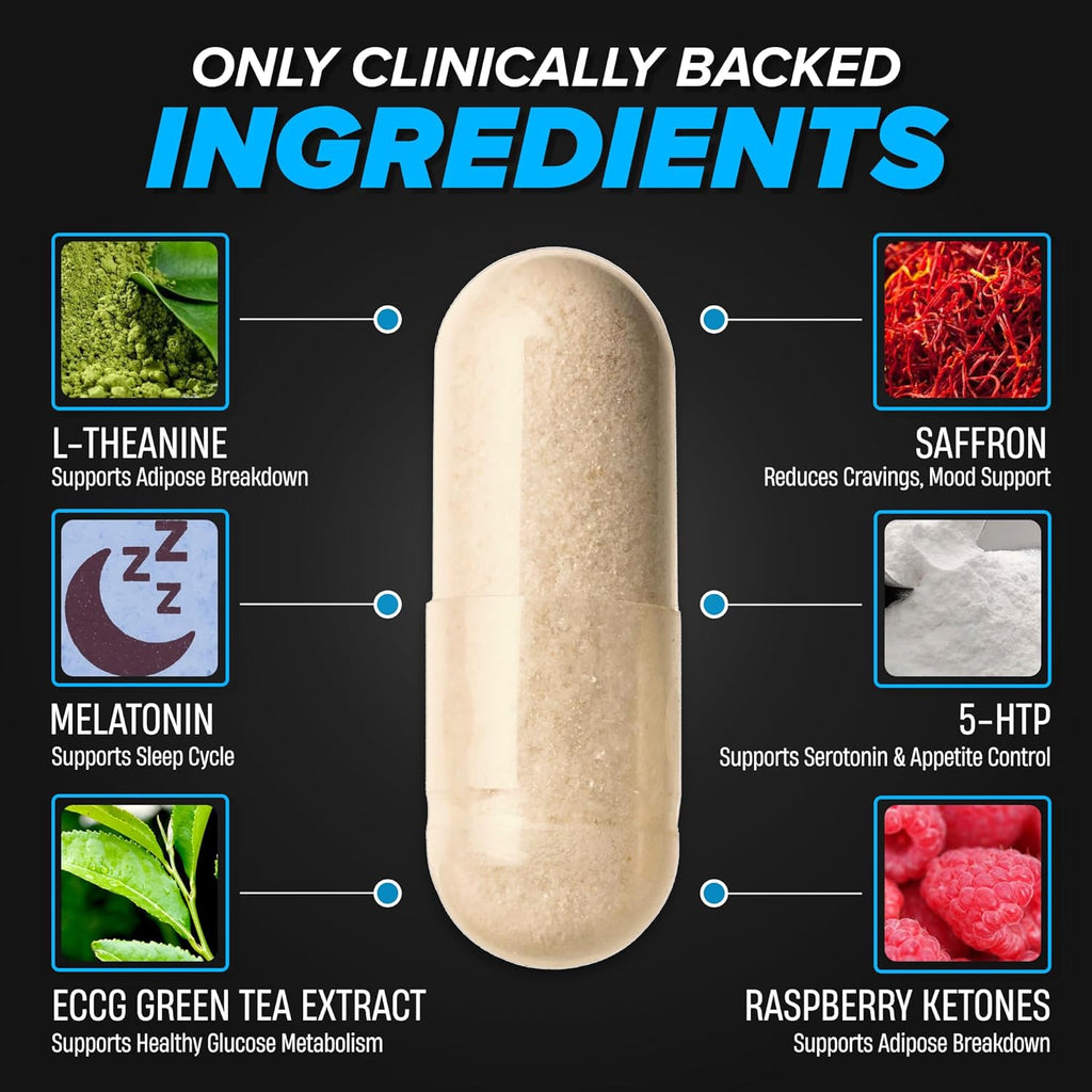 APPETITE SUPPRESSANT: Lipo6 Black Night Time fat burning pills contain a synergistic formula to help curb late night food cravings.