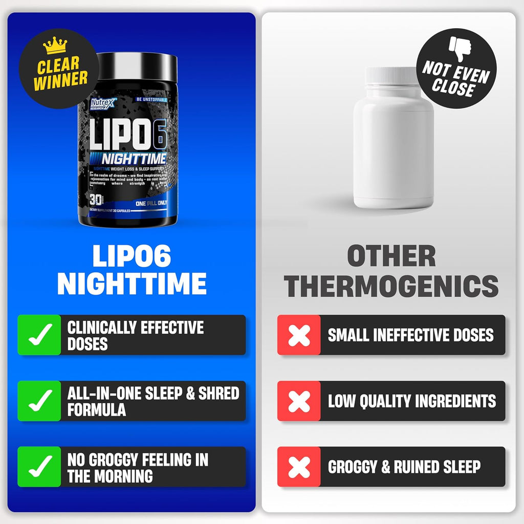 LOOSE WEIGHT SLEEP GREAT: Lipo-6 Black Nighttime is a caffeine free thermogenic fat burner men and women to provide maximum weightloss while helping to get a great nights rest.