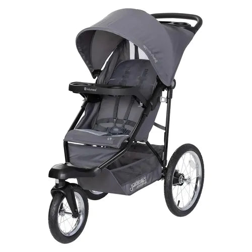 The Baby Trend® Journey Jogging Stroller makes every outing a fun activity. The parent tray, with two cup holders and a center console, offers a large space to keep your essentials. The child tray features cup holders and a snack area, so your little one can enjoy some treats while exploring the world. Every detail is built with care.