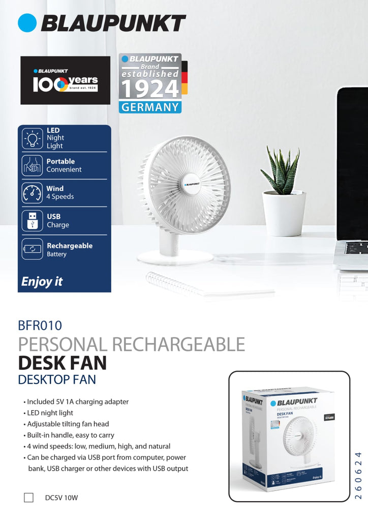 BLAUPUNKT Desktop Rechargeable Fan w/ LED Light
